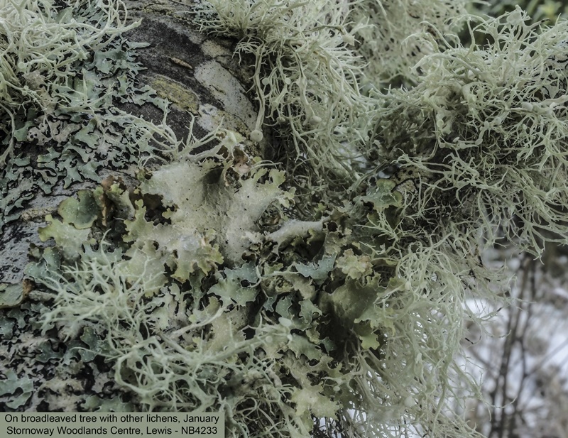 Large, foliose, glaucous to brownish lobes with erect, crisped, often isidiate or sorediate margins.Common on the branches of acid-barked trees
