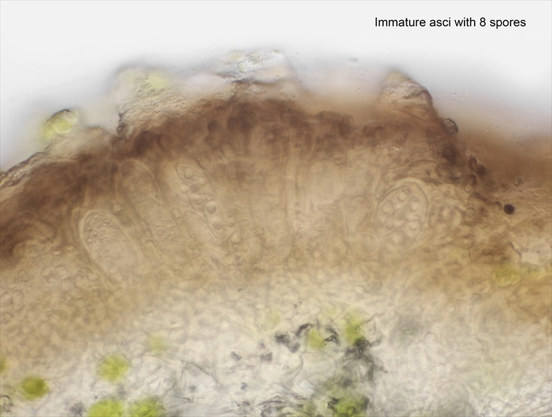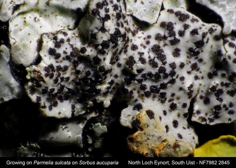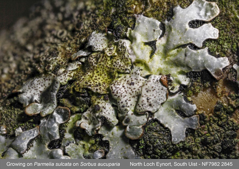 DNA studies have shown this Nesolechia is a lichenicolous lichen with an endokapylic thallus (no morphologically distinct lichenised structure) (Persoh & Rambold 2002). A common species in the north-west of Scotland, found on a wide range of genera in the Parmeliaceae