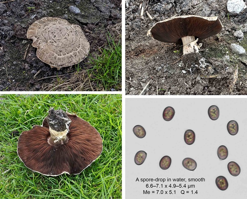 This is the common mushroom you find in shops: the white and chestnut buttons are harvested before the cap expands, while Portobello mushrooms are taken when fully grown. There are surprisingly few records for this species in the wild for Scotland. Almost certainly under-recorded as the spores must be in bought compost and on compost heaps.