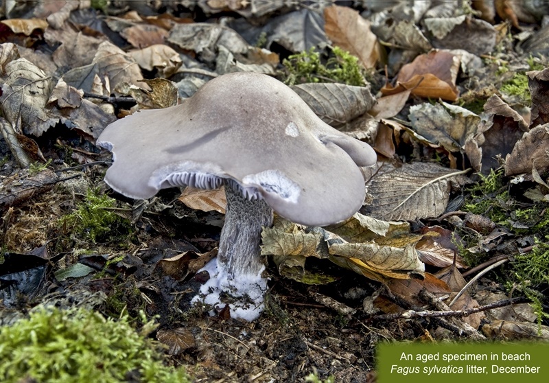 Quite striking when fresh, especially the gills, with vibrant violet/lavender colours, becoming brownish-pink with age. Easily confused with Lepista sordida but that species is generally smaller and with more dominant brown colours with violaceous overtones. Found in coniferous and deciduous woodland, grassland, parks and large gardens. Nationally common.